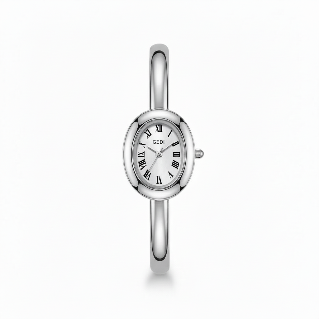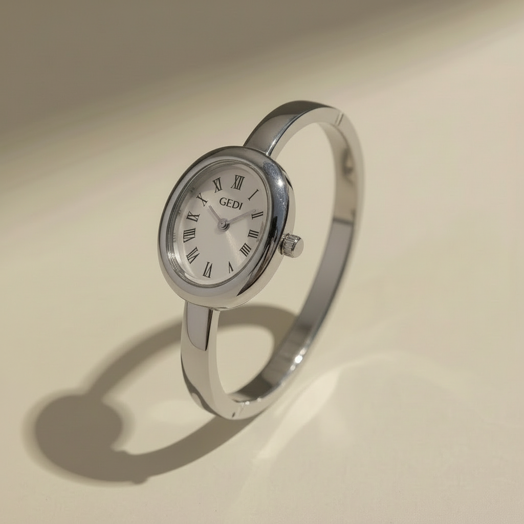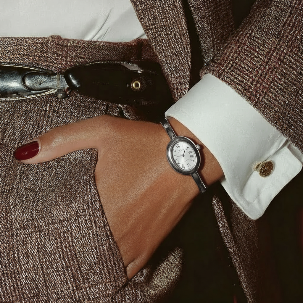 Delicate yet striking, The Éclat is made for the woman who believes elegance is found in the details. With its slim bangle design and soft oval face, this piece was crafted to flatter smaller wrists while adding just the right amount of shine. It’s the definition of effortless sophistication — subtle enough for everyday wear, yet polished enough to catch every eye in the room. Whether worn solo or stacked with your favorite jewelry, The Éclat is your quiet reminder that simplicity is the ultimate form of luxury.