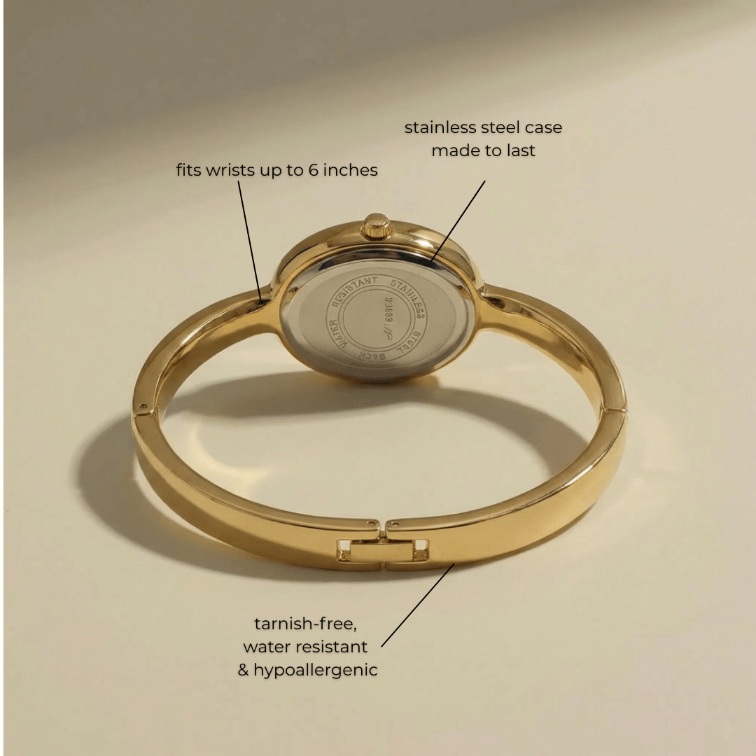 Delicate yet striking, The Éclat is made for the woman who believes elegance is found in the details. With its slim bangle design and soft oval face, this piece was crafted to flatter smaller wrists while adding just the right amount of shine. It’s the definition of effortless sophistication — subtle enough for everyday wear, yet polished enough to catch every eye in the room. Whether worn solo or stacked with your favorite jewelry, The Éclat is your quiet reminder that simplicity is the ultimate form of luxury.