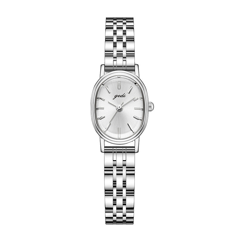 Graceful in form and powerful in presence, The Regent embodies quiet confidence and timeless class. Its sleek oval face and lustrous silver finish exude sophistication, while the slim bracelet design offers a flattering fit for smaller wrists. Designed for the woman who leads with poise, this piece captures the essence of modern royalty — polished, composed, and effortlessly refined. Whether paired with a tailored blazer or an evening dress, The Regent makes every moment feel a little more elevated.